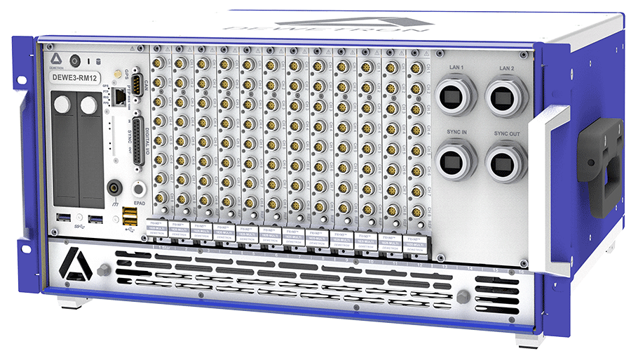 Das DEWE3-RM-Gehäuse kann mit 4, 8, 12 oder 16 TRION(3)-Modulen ausgestattet werden. Maximale Flexibilität und Modularität für Ihre Messaufgabe mit bis zu 128 analogen Eingangssignalen. Darüber hinaus ist der DEWE3-RMx speziell für den Einbau in einen 19-Zoll-Schaltschrank konzipiert. Wählen Sie die benötigten TRION(3)-Module und starten Sie sofort mit Ihrer Datenerfassung.