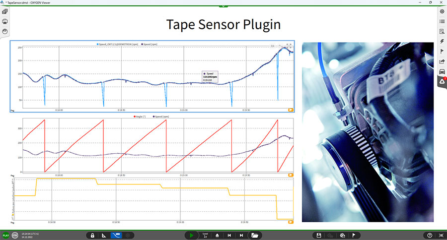 Verbessern Sie Ihre Rotationsanalyse – sowohl live als auch offline – mit dem Tape Sensor Plugin. Es berechnet zentrale mechanische Parameter wie Drehzahl, Winkel, Impulse pro Umdrehung und Spaltbreite. Erweiterte Einstellungen ermöglichen eine feine Abstimmung der Ergebnisse, einschließlich Signals Glättung, anpassbarer Ausgabestichprobenraten und weiterer Optionen.